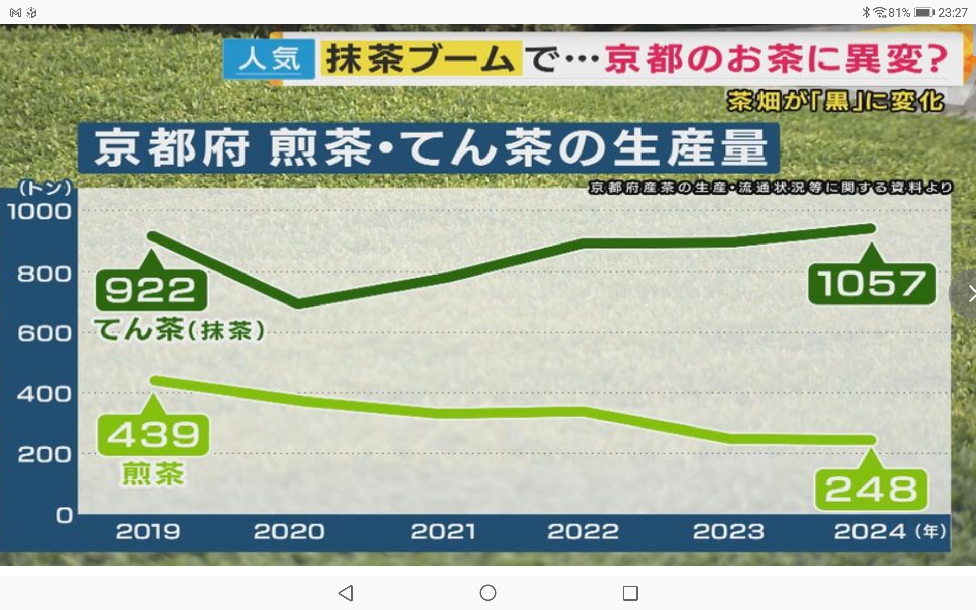 ■国が抹茶の生産を増やす方針を示し、生産量が増えている